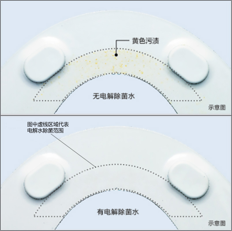 试验方法:对于采用便器底部电解水除菌技术的产品和无此功能的产品进行测试