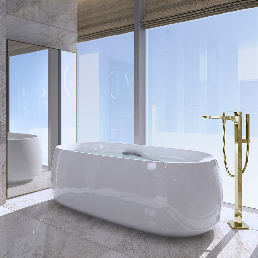 透过长方形浴缸后面的落地窗,你可以看到心仪的蓝天白云,享受沐浴在明亮阳光下的清新之感。