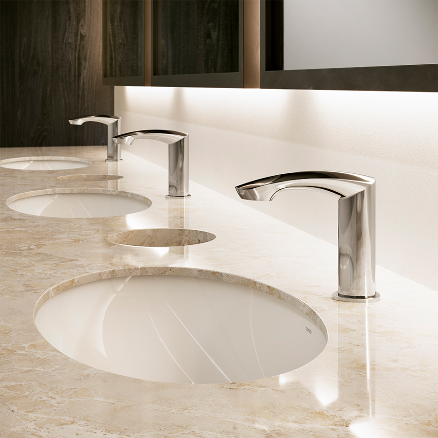 水嘴大胆地使用了拱顶设计,与曲面反射交相辉映,创造出庄严的优雅感。