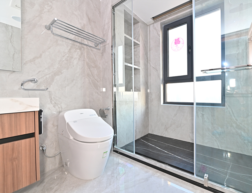 原来装修老旧,翻新后希望卫浴空间舒适有质感、能满足全家人需求,卫浴空间使用TOTO的产品。