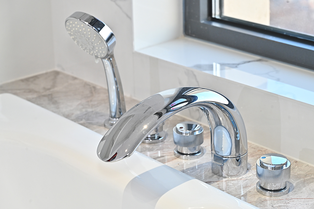 铜合金台式双柄双控浴缸水嘴(可转换·带抽取式花洒)