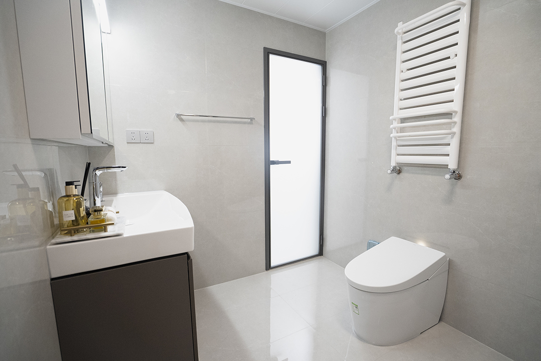 这个落地效果我还是很满意的。首先客卫实现了明显流线型的功能分区和干湿分离的设计,基本需求都可以解决。主卫搭配全自动智能坐便器和收纳功能强大的收纳柜,更好地实现了卫浴空间品质的提升。