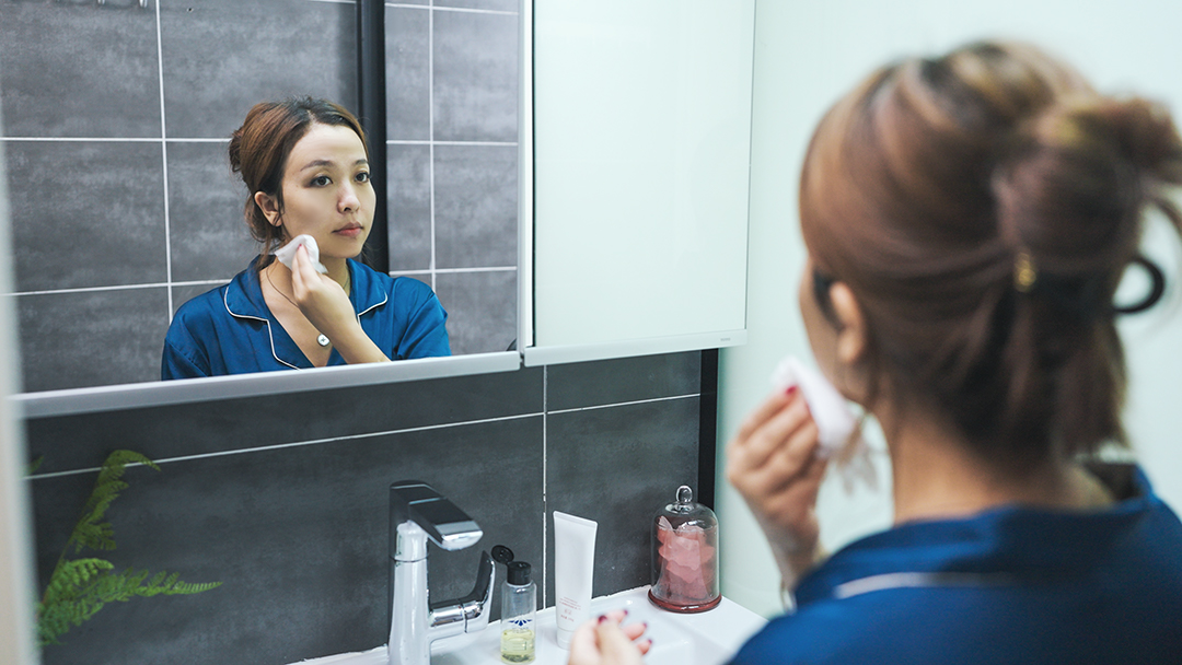 卫生间没有镜柜,所有的产品都要放在外面,不管放的再怎么规整,它看起来还是会很杂乱。